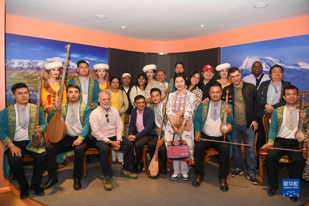 新疆自古以來是多元文化并存的地區(qū)。在疏附縣新疆民族樂器村,當(dāng)?shù)貥氛哂脽嵬吒Α⒍妓柕葌鹘y(tǒng)樂器為參訪團(tuán)一行演奏歌曲。巴西駐廣州總領(lǐng)事杜飛對(duì)此印象深刻:“我曾在中亞地區(qū)工作多年,對(duì)這些樂器很熟悉,新疆多元文化融合現(xiàn)狀展示出各民族可以很好地生活在一起?!?/p>