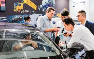 日前,外國采購商在廣交會(huì)新設(shè)置的新能源及智能網(wǎng)聯(lián)汽車展區(qū)了解中國新能源汽車產(chǎn)品。新華社記者 劉大偉攝