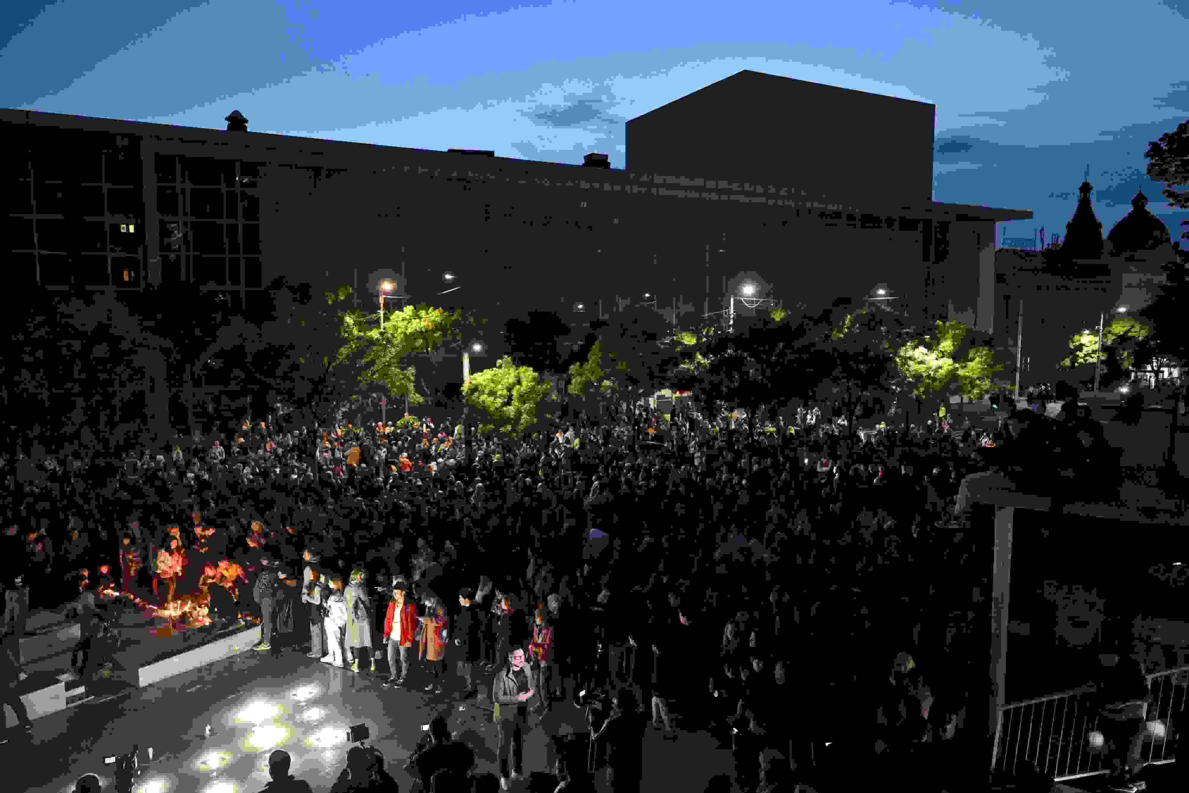 當(dāng)?shù)貢r(shí)間2023年5月3日,塞爾維亞貝爾格萊德,人們?cè)趯W(xué)校門前悼念遇難者。