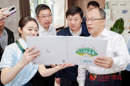 與會(huì)領(lǐng)導(dǎo)在欣賞郵票冊(cè)子。 人民網(wǎng) 周博攝