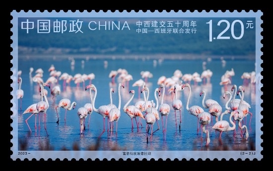 為紀(jì)念中西建交50周年,中國(guó)郵政定于2023年5月10日發(fā)行《中西建交五十周年》(與西班牙聯(lián)合發(fā)行)紀(jì)念郵票1套2枚,郵票圖案以西班牙的富恩特皮埃德拉湖和中國(guó)的衡水湖為題材,展現(xiàn)出兩國(guó)湖泊的旖旎風(fēng)光和自然生態(tài)特征,畫(huà)面構(gòu)圖簡(jiǎn)約明快、表現(xiàn)意境清朗優(yōu)美。據(jù)了解,這是衡水湖首次作為“國(guó)家名片”出現(xiàn)在中外聯(lián)合發(fā)行的郵票當(dāng)中。