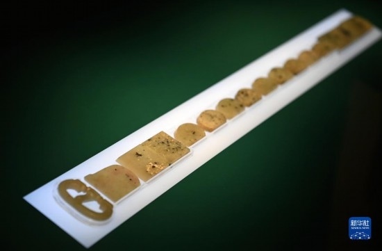 這是在陜西歷史博物館拍攝的骨咄玉帶銙(5月11日攝)。“骨咄”即珂咄羅,是位于今塔吉克斯坦和阿富汗之間的中亞小國,史籍記載與唐王朝交往密切。