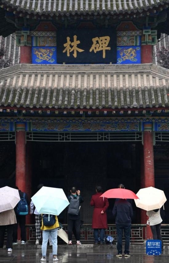 5月9日,游客在西安碑林博物館內(nèi)參觀游覽。