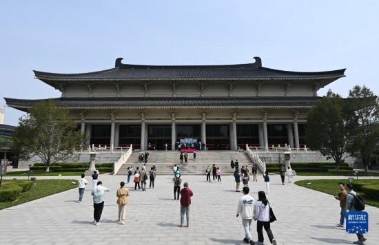 5月8日,游客在西安博物院參觀游覽。