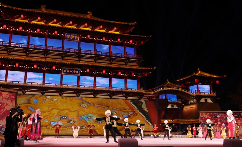 宴會后,習近平夫婦同貴賓們共同觀看中國同中亞國家人民文化藝術年暨中國-中亞青年藝術節(jié)開幕式演出。