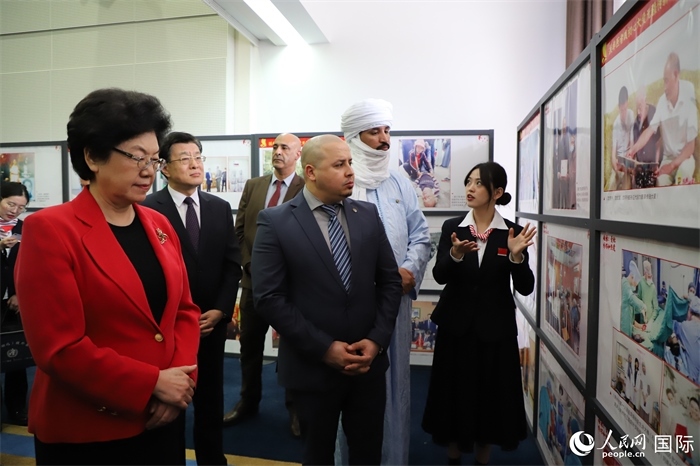 與會(huì)嘉賓參觀“60年中國援阿醫(yī)療隊(duì)圖片展”。人民網(wǎng)記者 王傳寶攝