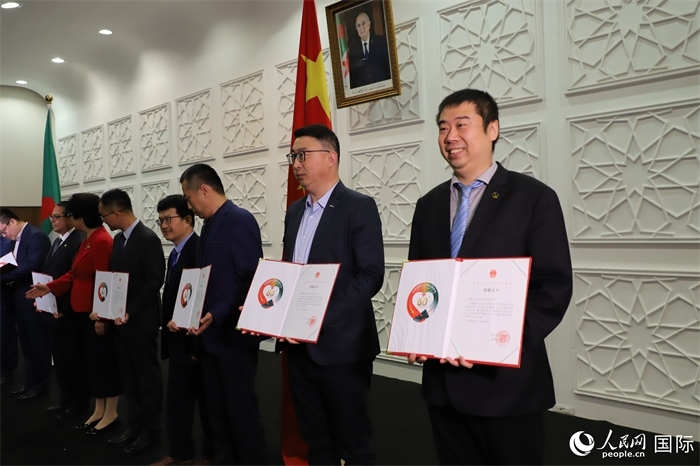 招待會(huì)上,與會(huì)嘉賓還向第27批醫(yī)療隊(duì)各個(gè)分隊(duì)頒發(fā)了獎(jiǎng)?wù)?,并為近來參與向阿爾及利亞各地醫(yī)療機(jī)構(gòu)捐贈(zèng)物資的中資企業(yè)頒發(fā)了證書。