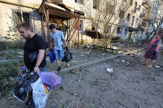 2022年6月20日,頓涅茨克當?shù)鼐用駨谋粨p壞的建筑撤離。新華社發(fā)(維克托攝)