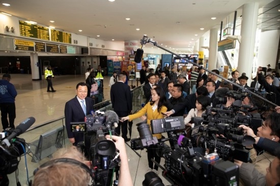 5月23日,中國(guó)新任駐美大使謝鋒抵美履新。在紐約機(jī)場(chǎng),謝鋒與在場(chǎng)的中外媒體及各界人士交流互動(dòng)。