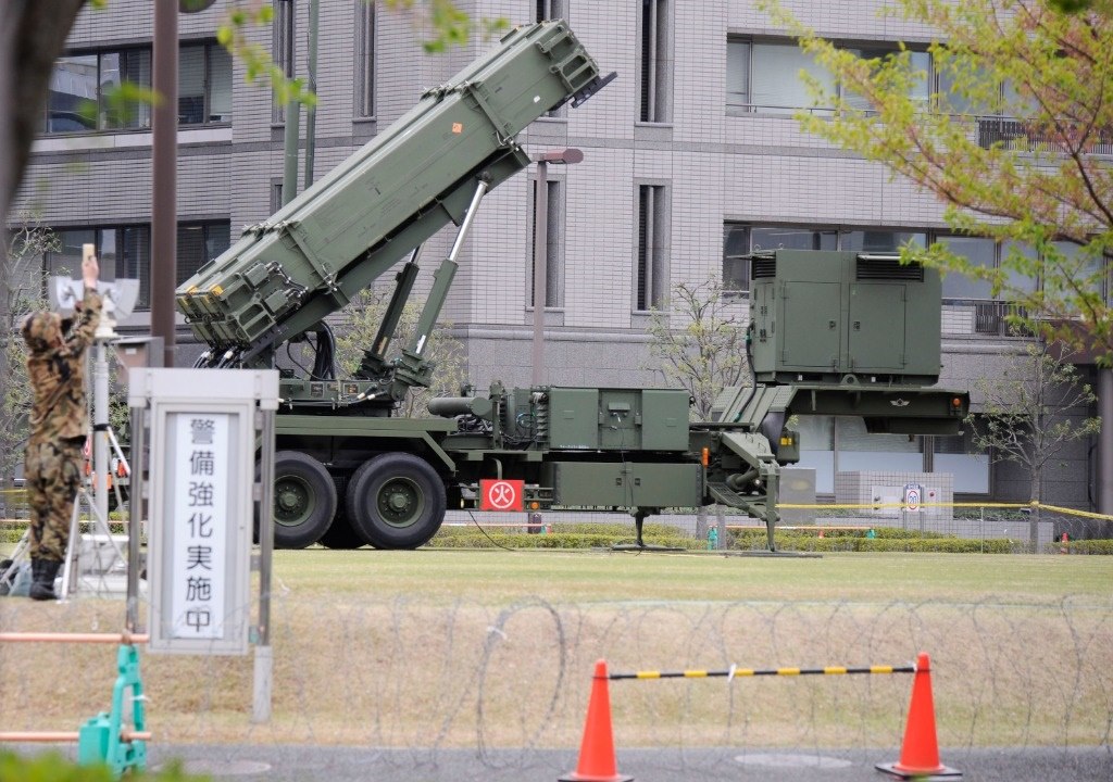 2013年4月9日,在日本東京的防衛(wèi)省總部,“愛(ài)國(guó)者3型”導(dǎo)彈發(fā)射裝置停放在運(yùn)動(dòng)場(chǎng)內(nèi)。新華社發(fā)(關(guān)賢一郎攝)