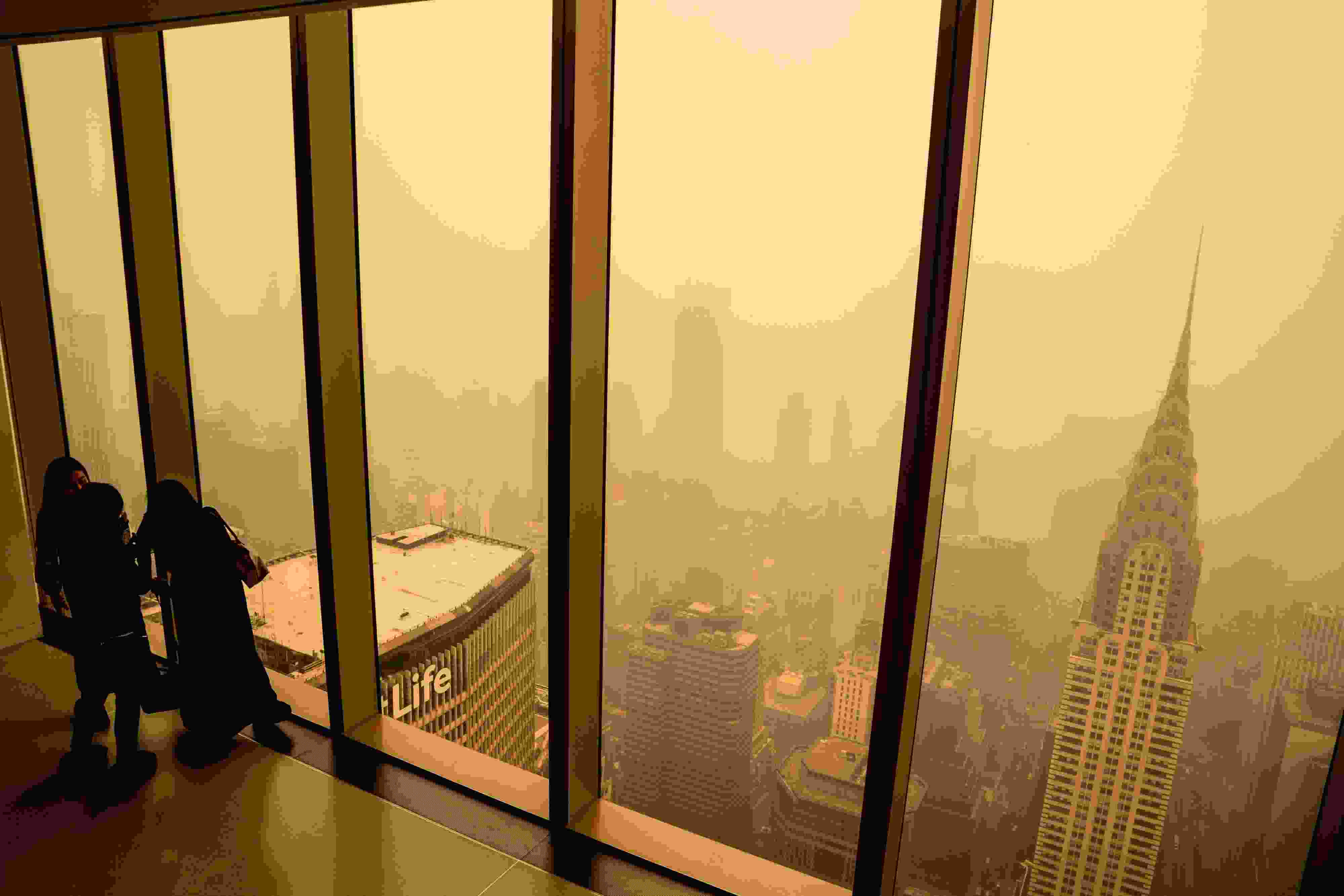 當?shù)貢r間2023年6月7日,受加拿大野火煙霧持續(xù)南下影響,美國紐約籠罩在“橙色霧霾”中。當天,紐約成為全球空氣污染最嚴重的城市。 視覺中國
