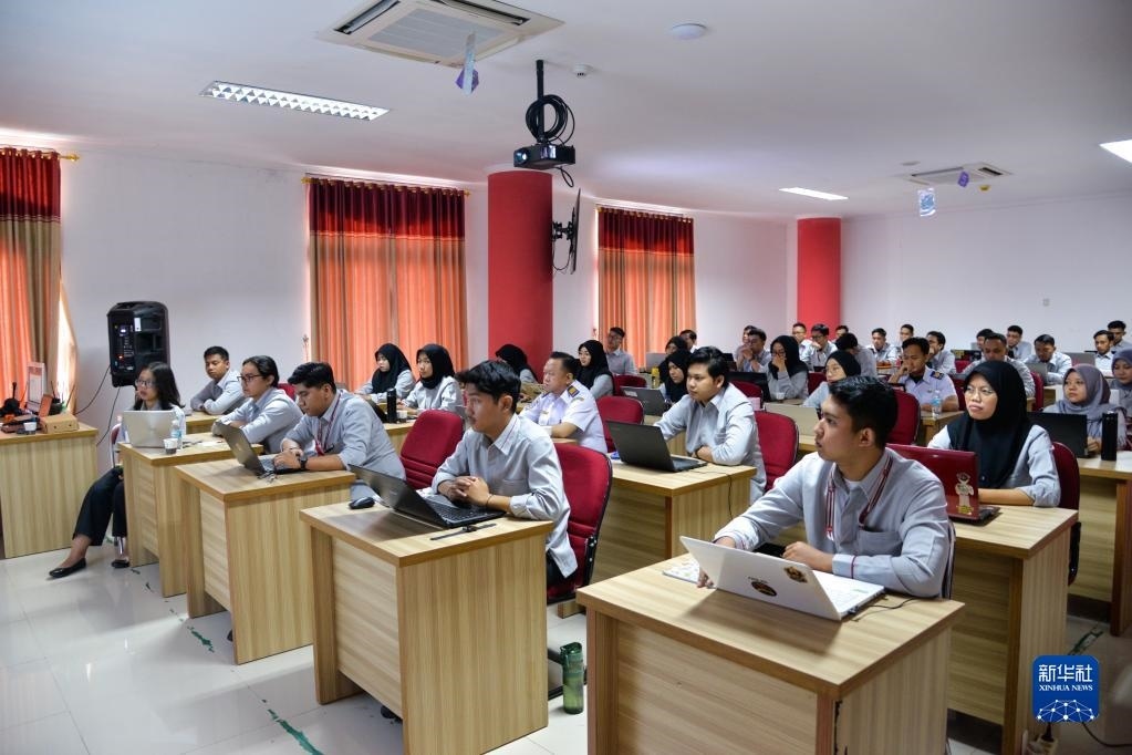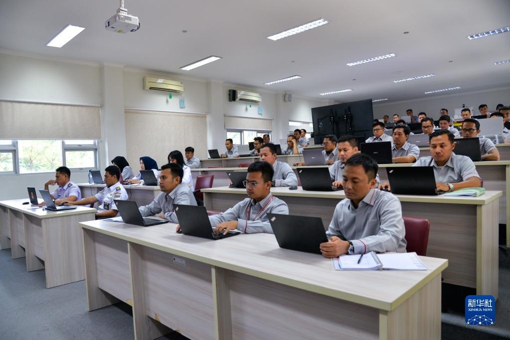 6月7日,在位于印度尼西亞茉莉芬市的印尼鐵路理工學(xué)院,學(xué)員在接受雅萬高鐵運行控制中心調(diào)度人員培訓(xùn)。