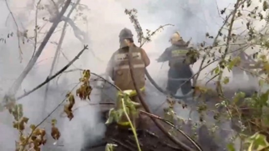 視頻截圖:火災(zāi)救援畫面(哈薩克斯坦緊急情況部提供)