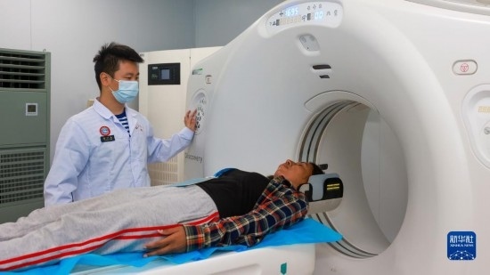 中國海軍“和平方舟”號醫(yī)院船訪問東帝汶并開展醫(yī)療服務(wù)期間,醫(yī)院船醫(yī)護人員為當(dāng)?shù)孛癖娺M行CT檢查(9月6日攝)。新華社發(fā)(陳云飛 攝)