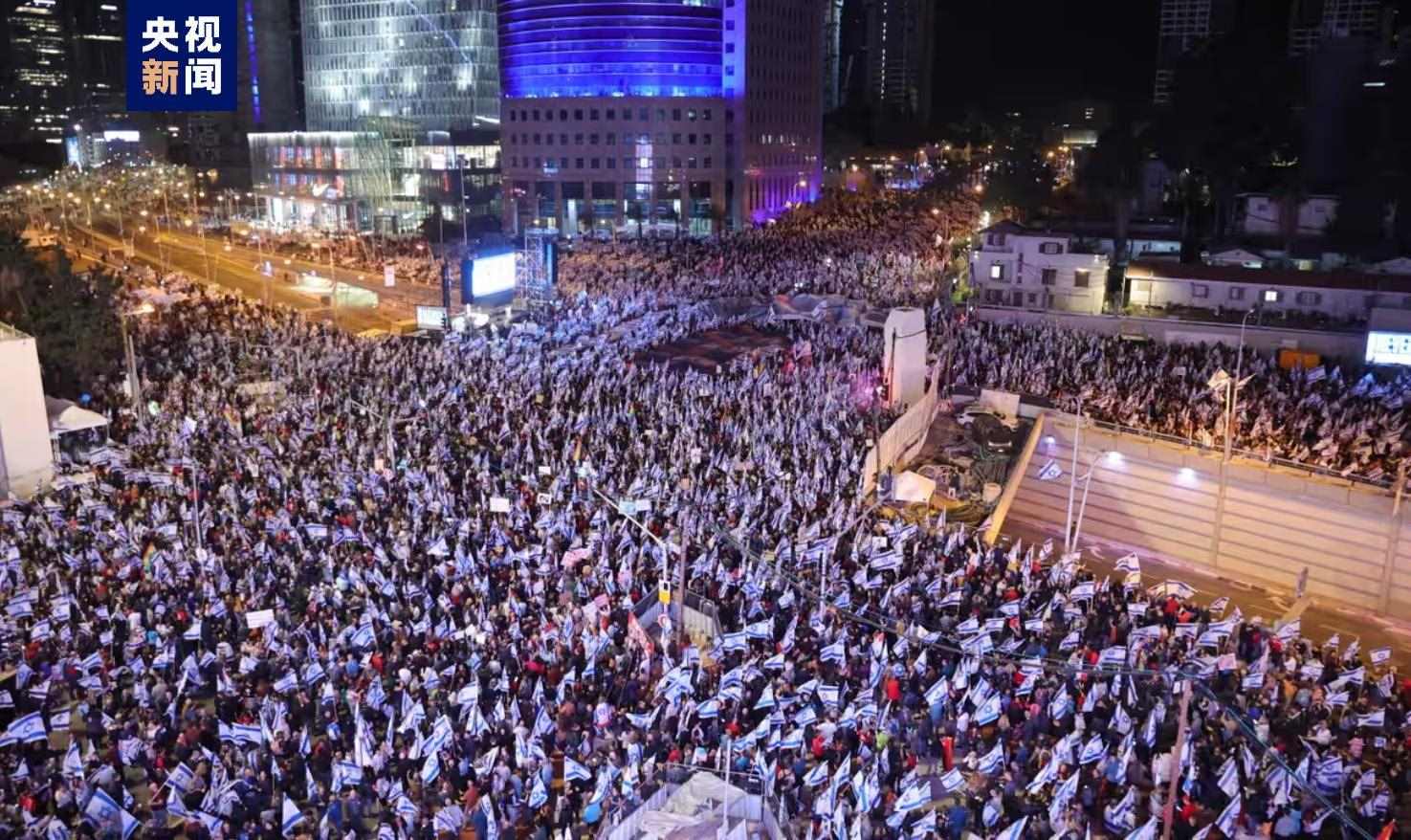 △自今年1月起,反對(duì)司法改革的民眾每周六在特拉維夫舉行大規(guī)模集會(huì)。