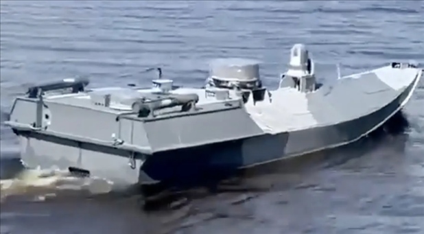 烏克蘭公布的“Sea Baby”新型自殺式無人艇采用低可視度的灰色涂裝。