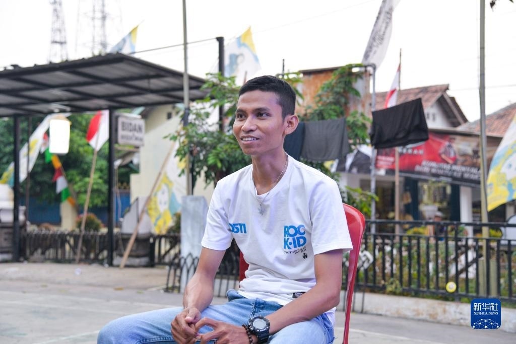 8月13日,在印度尼西亞普哇加達(dá)縣蘇卡加亞村,村長(zhǎng)助理佩爾馬納接受新華社記者采訪。新華社記者 徐欽 攝