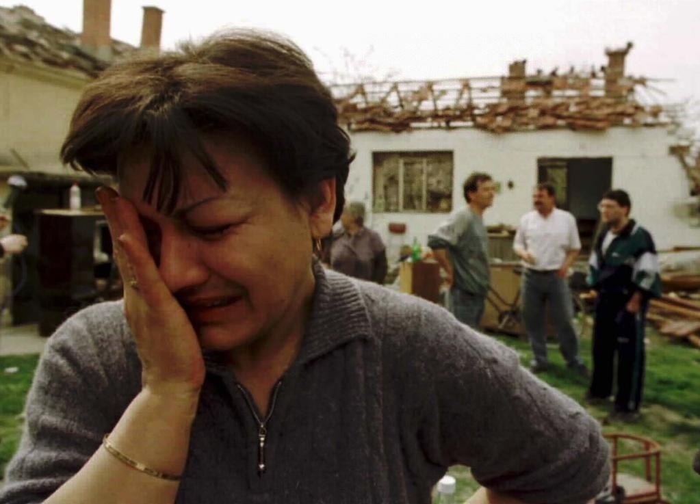 1999年4月9日,在南聯(lián)盟塞爾維亞共和國小城楚皮亞附近的村莊里,42歲的薇拉·米哈洛維奇站在被炸毀的房子前失聲痛哭。1999年3月,以美國為首的北約軍隊打著“避免人道主義災難”的旗號,公然繞過聯(lián)合國安理會,對當時的南斯拉夫聯(lián)盟共和國進行了78天的持續(xù)轟炸,造成2000多名無辜平民喪生。(新華社記者黃文攝)