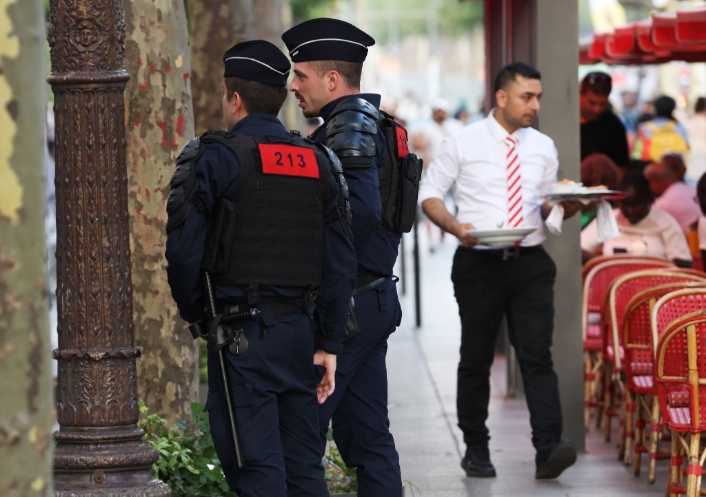 7月2日晚間,警察在法國巴黎凱旋門附近巡邏。新華社記者高靜攝
