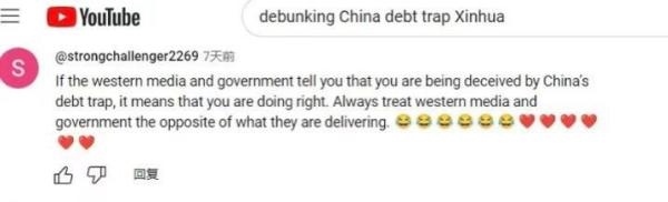 網(wǎng)友“強(qiáng)力挑戰(zhàn)者2269”直言:“如果西方政府和媒體告訴你,你陷入了中國(guó)的‘債務(wù)陷阱’,那證明你做對(duì)了。對(duì)待西方媒體和政府宣傳的信息,你得反著看。”