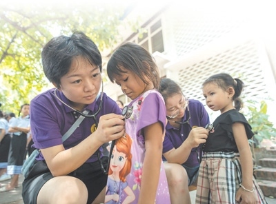 在中國(guó)民間組織國(guó)際交流促進(jìn)會(huì)的協(xié)助下,“中國(guó)—老撾先天性心臟病聯(lián)合篩查和治療”醫(yī)療合作項(xiàng)目團(tuán)隊(duì)6月中下旬在萬象、烏多姆賽省、瑯勃拉邦省等地,對(duì)近6000名3歲至18歲的幼兒園孩童和中小學(xué)生進(jìn)行先心病免費(fèi)篩查,并為部分患兒進(jìn)行治療。近年來,中國(guó)和老撾、柬埔寨等國(guó)醫(yī)護(hù)工作者攜手護(hù)佑生命,守衛(wèi)健康,為當(dāng)?shù)貎和钇鹆艘蛔靶闹畼颉薄!案兄x中國(guó)醫(yī)生用先進(jìn)的醫(yī)療技術(shù),為老撾患者帶來了生命的希望?!眳⑴c活動(dòng)的老撾衛(wèi)生部部長(zhǎng)本豐由衷地說。