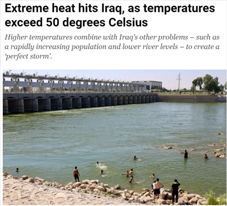 半島電視臺當(dāng)?shù)貢r間8月4日報道稱,伊拉克近來頻現(xiàn)極端高溫天氣,首都巴格達(dá)的氣溫一度達(dá)到49攝氏度,南部重鎮(zhèn)巴士拉的最高氣溫甚至超過51攝氏度。