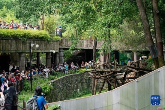 8月21日,游客在美國首都華盛頓史密森學(xué)會(huì)國家動(dòng)物園觀看大熊貓幼崽“小奇跡”過生日。新華社記者 劉杰 攝