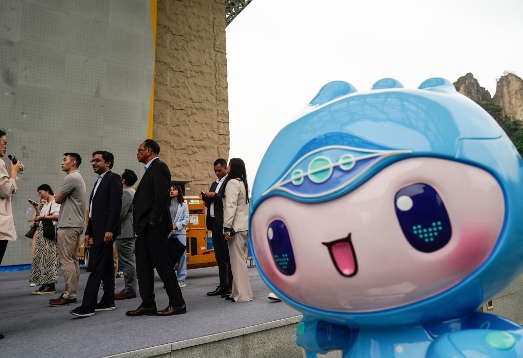 在自動檢測產(chǎn)品外觀缺陷的視覺質(zhì)檢機器人前,使節(jié)們停下腳步,饒有興致地觀看?;瘕堈f:“在數(shù)字經(jīng)濟推動下,人工智能等技術(shù)與傳統(tǒng)工業(yè)深度結(jié)合,讓人耳目一新。”
