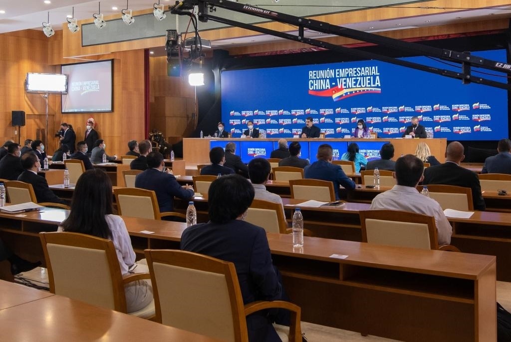 2020年11月6日,委內瑞拉總統(tǒng)馬杜羅率內閣主要成員與中資企業(yè)代表舉行座談會,希望進一步推進兩國務實合作,造福兩國人民。新華社發(fā)(薩爾戈多攝)