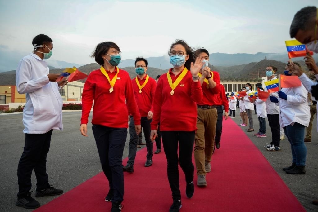 2020年4月11日,在委內瑞拉首都加拉加斯,中國抗疫醫(yī)療專家組在授勛儀式結束后登機回國。新華社發(fā)(薩爾戈多攝)
