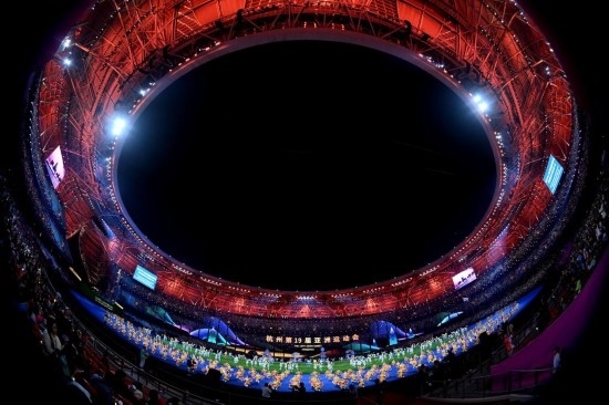 10月8日,演員在閉幕式上表演。當(dāng)日,杭州第19屆亞洲運(yùn)動(dòng)會(huì)閉幕式在杭州奧體中心體育場(chǎng)舉行。(新華社記者黃宗治攝)