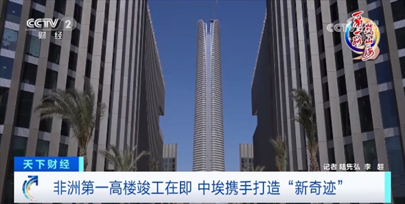 總臺(tái)記者 陸雋弘:這片已然拔地而起的現(xiàn)代化新城,就是在建中的埃及新行政首都中央商務(wù)區(qū)。其中最高大顯眼的這座大樓,便是高達(dá)385.8米的非洲第一高樓“標(biāo)志塔”。中央商務(wù)區(qū)項(xiàng)目的全部20棟建筑均已完成主體結(jié)構(gòu)及外裝幕墻的施工,整個(gè)項(xiàng)目正處于竣工前的最后沖刺階段。
