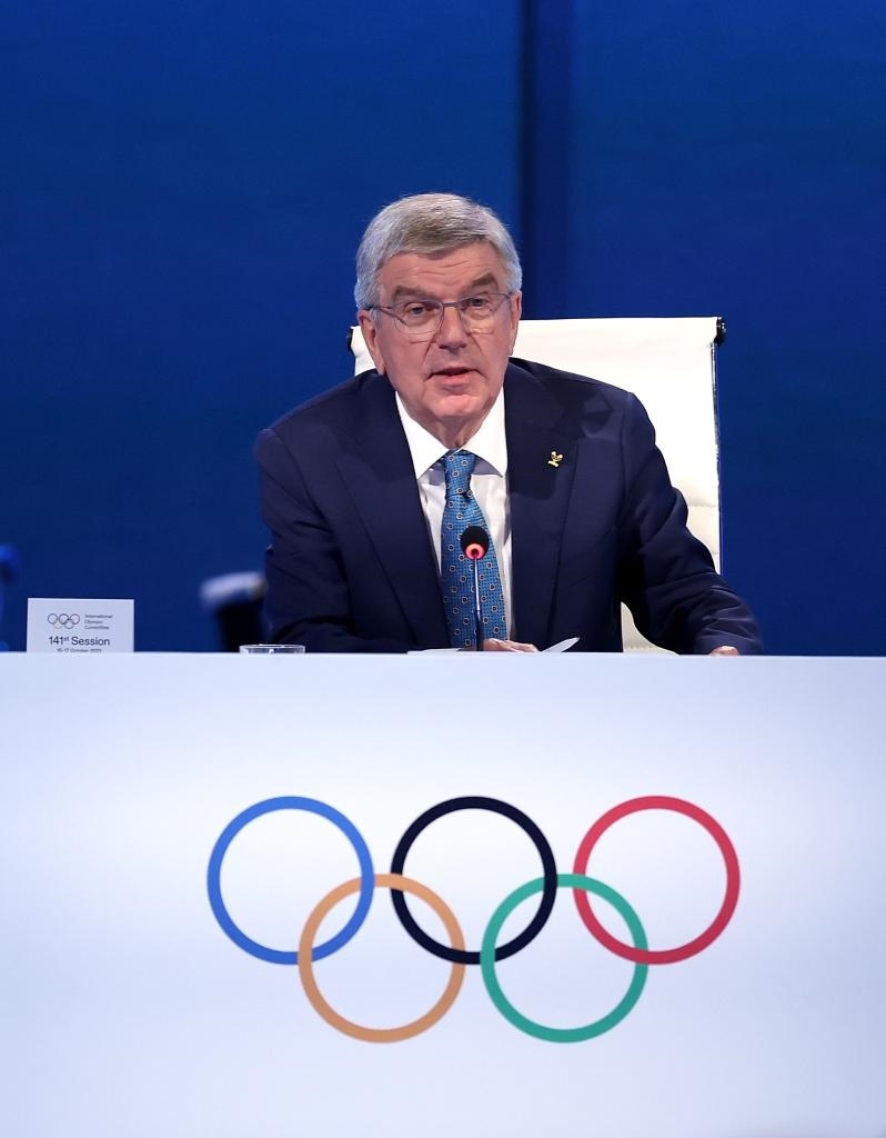 國際奧委會主席巴赫在會上發(fā)言。新華社記者 曹燦 攝