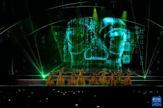 10月18日,在第81屆世界科幻大會開幕式上,演員在表演《攬星》科幻秀。