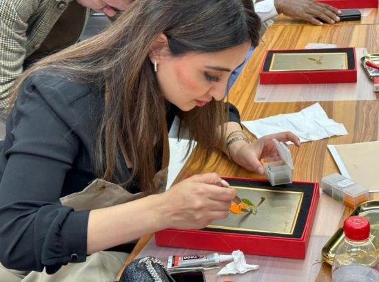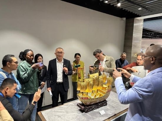 嘉賓在中國(guó)工藝集團(tuán)體驗(yàn)景泰藍(lán)制作過(guò)程 (新華社記者王艷剛攝)