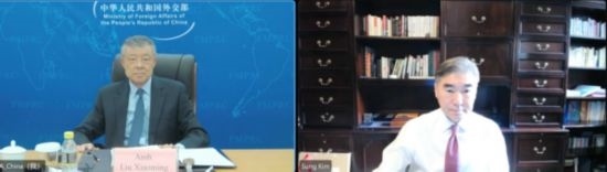 2023年10月30日,中國(guó)政府朝鮮半島事務(wù)特別代表劉曉明同美國(guó)對(duì)朝政策特別代表金圣視頻通話,就朝鮮半島形勢(shì)交換意見(jiàn)。