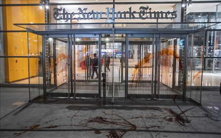 另據(jù)《以色列時報》報道,還有示威者在《紐約時報》總部大樓外集會并在大樓入口處潑上紅色顏料,這些示威者認(rèn)為《紐約時報》關(guān)于巴以新一輪沖突的報道偏袒以色列。