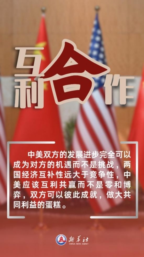中美雙方的發(fā)展進(jìn)步完全可以成為對(duì)方的機(jī)遇而不是挑戰(zhàn),兩國(guó)經(jīng)濟(jì)互補(bǔ)性遠(yuǎn)大于競(jìng)爭(zhēng)性,中美應(yīng)該互利共贏而不是零和博弈,雙方可以彼此成就,做大共同利益的蛋糕。