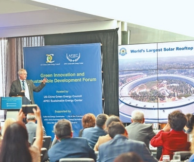 當?shù)貢r間11月13日,由亞太經(jīng)合組織可持續(xù)能源中心和美中綠色能源促進會共同主辦的“綠色創(chuàng)新與可持續(xù)發(fā)展論壇”在舊金山舉行,與會嘉賓就清潔能源、綠色發(fā)展、共同應(yīng)對氣候變化等議題交流研討。本報北美中心分社 伊芙莉·妮可·梅菲爾德攝