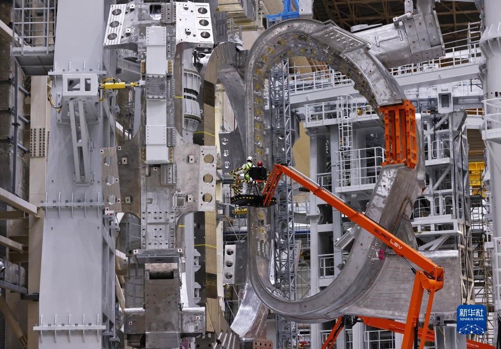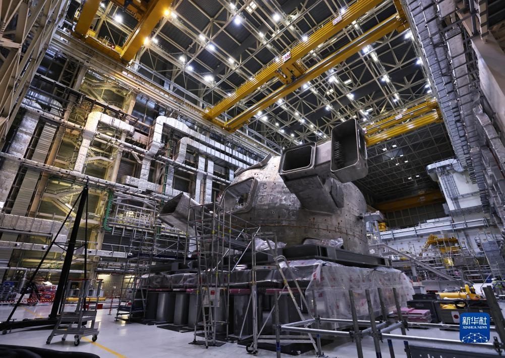 ?這是11月23日在位于法國圣保羅-萊迪朗斯的國際熱核聚變實驗反應堆(ITER)建設現場拍攝的安裝中的托卡馬克裝置。新華社記者 高靜 攝