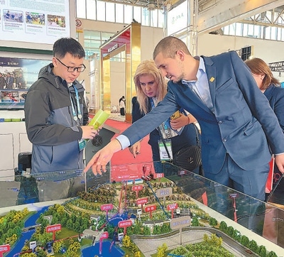 外國參展商在了解節(jié)水灌溉系統(tǒng)。本報記者 呂鐘正攝