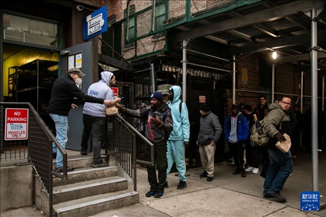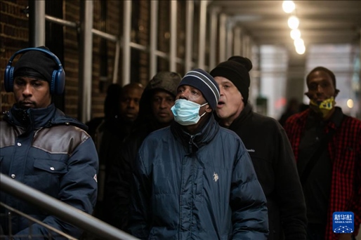 12月24日,在美國紐約,民眾在“紐約公共食品儲藏室”排隊領取免費食品。新華社發(fā)(郭克攝)