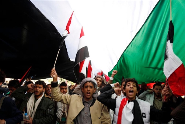 2023年10月20日,在也門首都薩那,人們參加聲援巴勒斯坦的游行。新華社發(fā)(穆罕默德·穆罕默德攝)