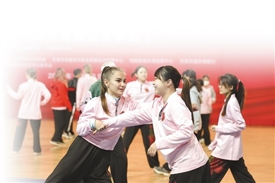 在2023年11月舉行的2023年在華留學(xué)生武術(shù)訓(xùn)練營(天津外國語大學(xué)站)活動上,外國留學(xué)生學(xué)習(xí)中國傳統(tǒng)武術(shù)。劉東岳攝(影像中國)