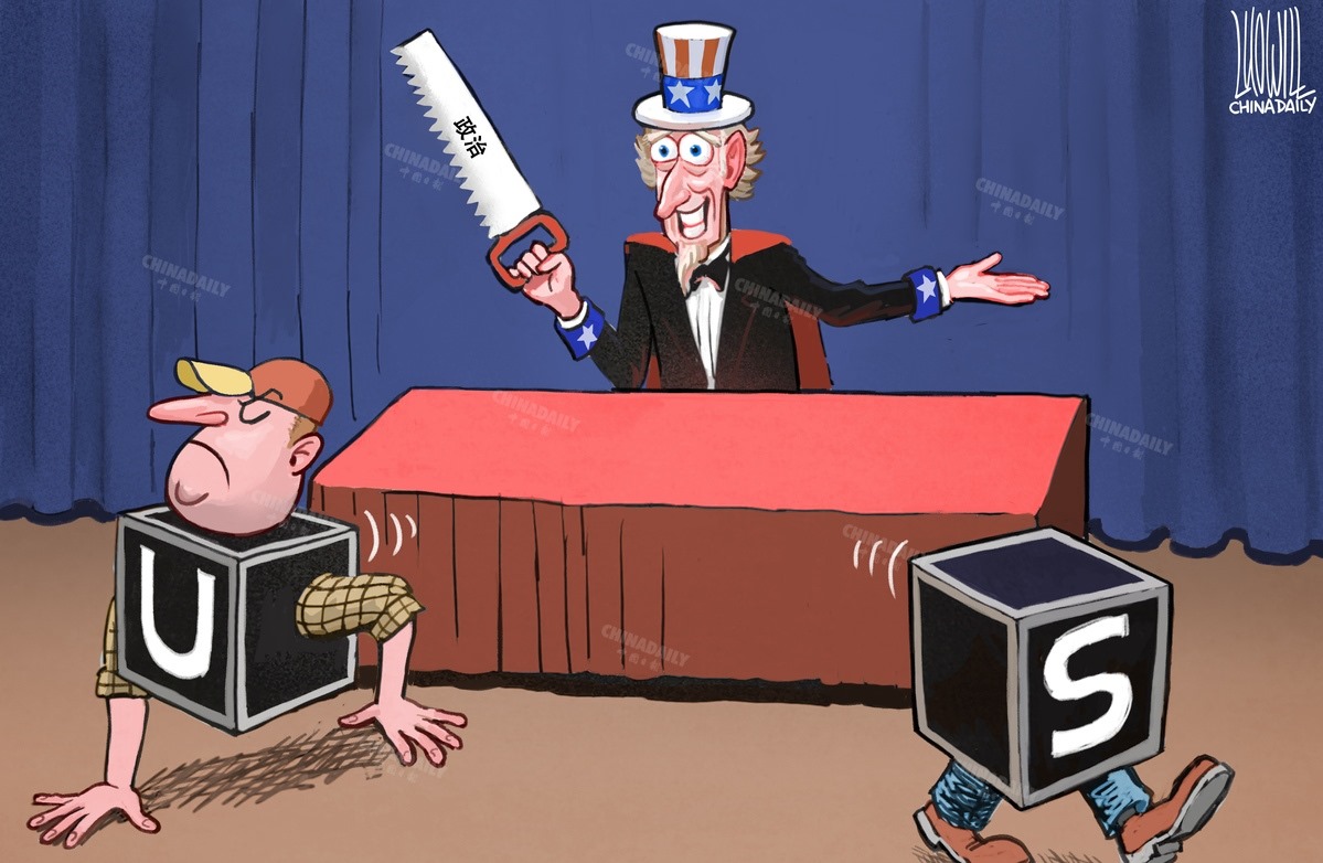 美國(guó)政治導(dǎo)致社會(huì)分裂。(來(lái)源:中國(guó)日?qǐng)?bào) 作者:羅杰)