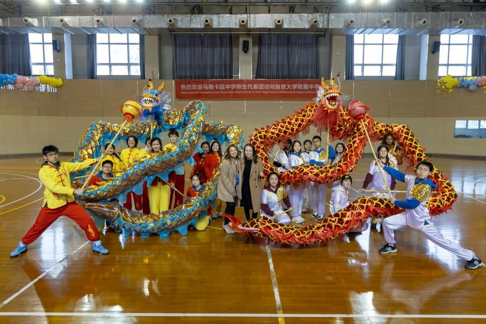 1月29日,馬斯卡廷學(xué)生在上海參加舞龍?bào)w驗(yàn)活動(dòng)。