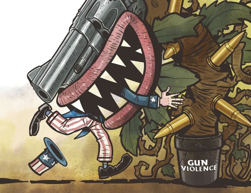 過于頻繁的槍支暴力事件已經(jīng)將美國社會(huì)吞沒。(來源:中國日報(bào) 作者:蔡艨)