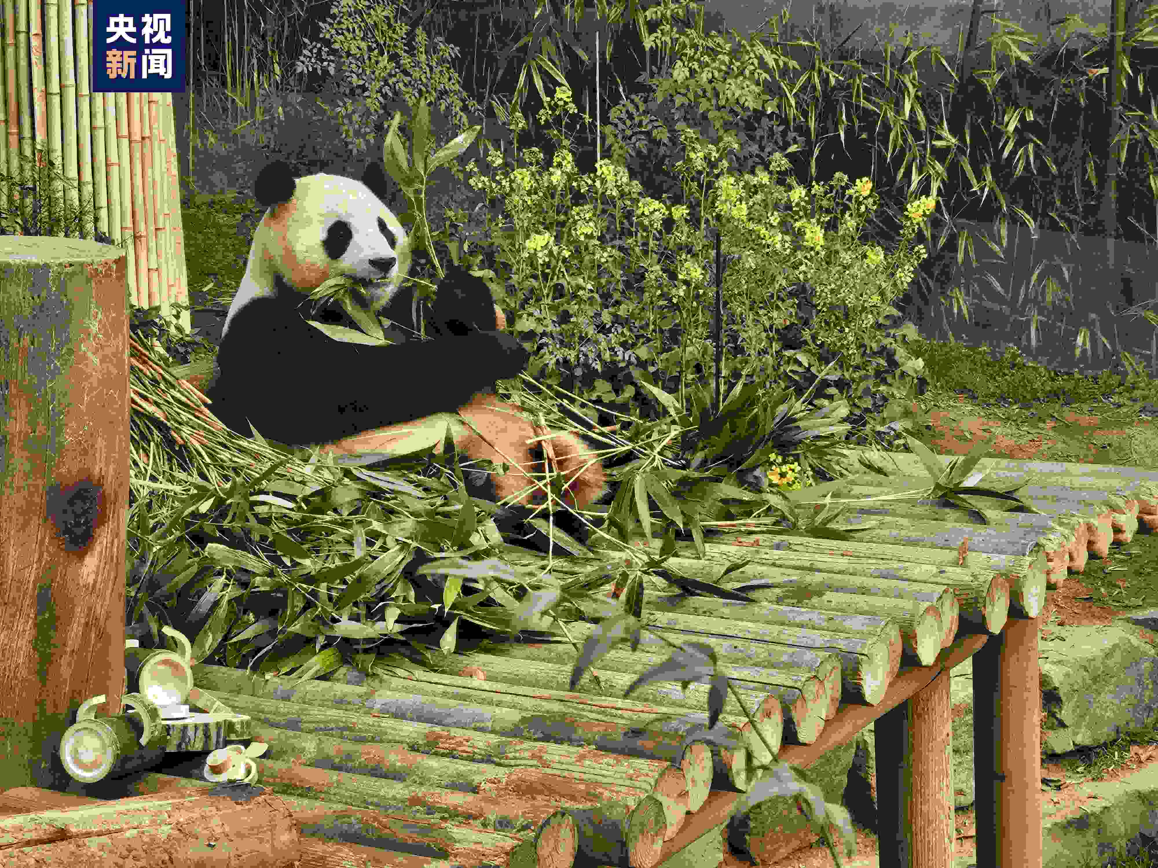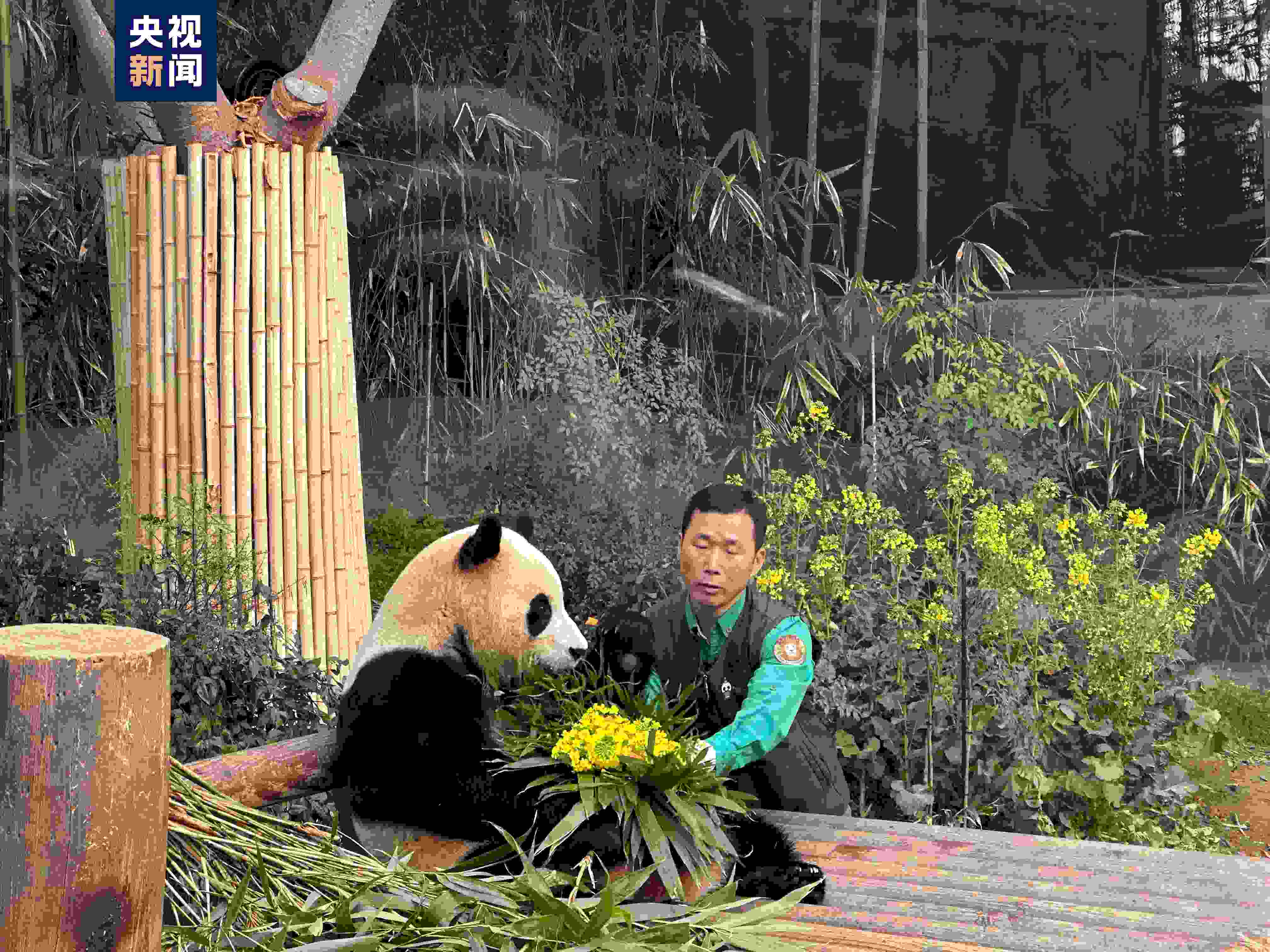 當天,“福寶”的飼養(yǎng)員姜哲遠、宋永寬為福寶準備了愛心窩頭和竹子制作的“寶家族”全家福,還有寄托著兩位飼養(yǎng)員美好祝福的油菜花束,讓福寶最后一個與韓國觀眾見面的日子充滿了愛與祝福。