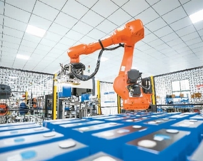 在江西省撫州市南豐縣,智能化生產(chǎn)車間正在裝配儲(chǔ)能電池。謝 東攝(人民視覺)