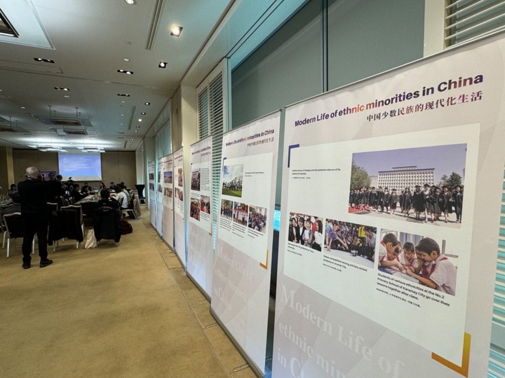 ?3月14日,由中國(guó)人權(quán)研究會(huì)主辦的“現(xiàn)代化發(fā)展中的少數(shù)民族受教育權(quán)——以中國(guó)西藏和新疆為例”主題邊會(huì)在瑞士日內(nèi)瓦舉行。圖為會(huì)議現(xiàn)場(chǎng)舉辦的“中國(guó)少數(shù)民族的現(xiàn)代化生活”圖片展。新華社記者石松攝
